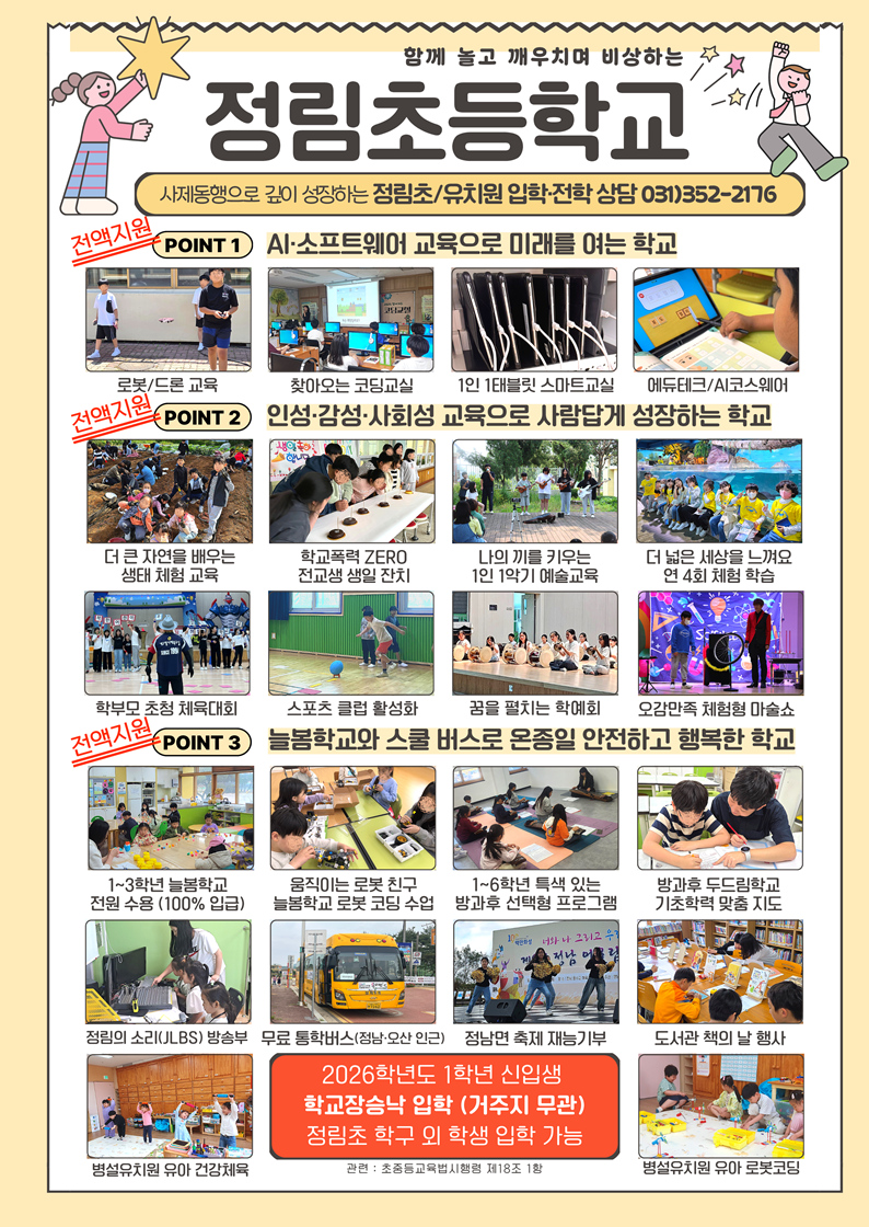 [안내]정림초등학교 2026학년도 신입생 관련 정보